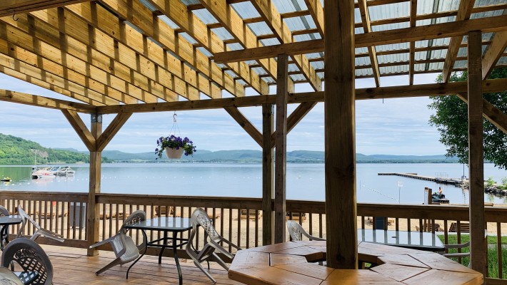 Sur la terrasse de la plage se retrouve un resto-bar, en collaboration avec Les Plats du Roy.